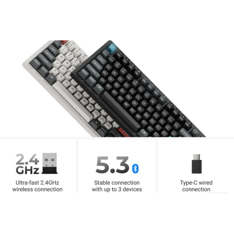 Giới thiệu Keychron Q3 Ultra, bàn phím cơ không dây tùy chỉnh cao cấp với bố cục TKL 80% được thiết kế để mang lại hiệu năng vượt trội. Với thiết kế hoàn toàn bằng kim loại bóng bẩy, nó cung cấp cả kết nối không dây 2.4 GHz và tốc độ phản hồi đột phá 8000Hz cho khả năng nhập liệu cực kỳ nhạy bén. Được tăng cường với nhiều lớp mút cách âm và khả năng lập trình ZMK, nó mang đến trải nghiệm gõ phím tinh tế với âm thanh cao cấp và khả năng tùy chỉnh hoàn toàn.